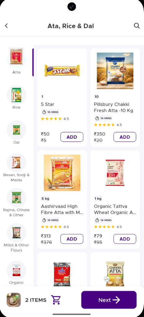 Explore categories like fruits, vegetables, dairy, snacks, household essentials and more.